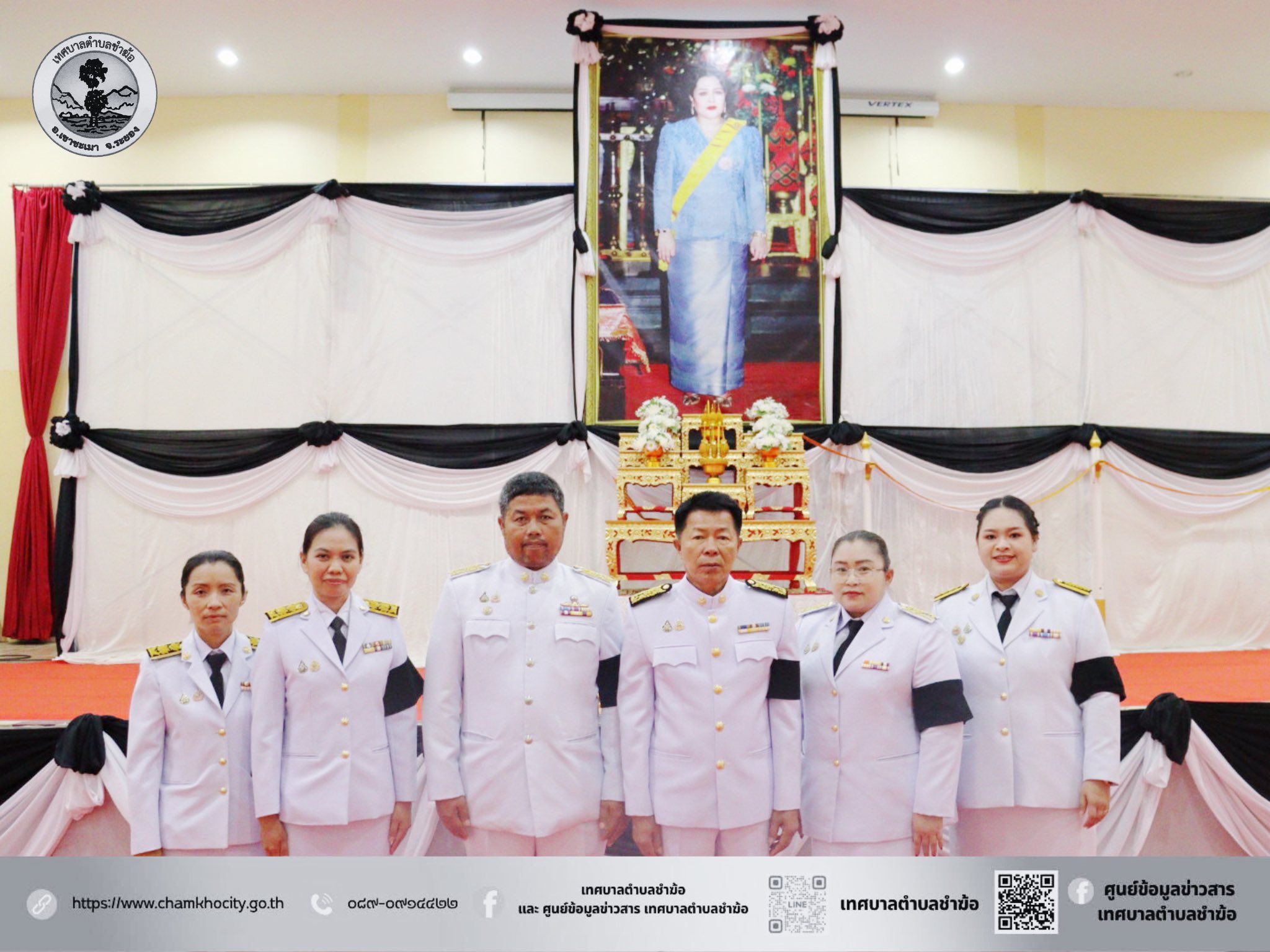 พระเสด็จสู่แดนสรวง ไทยทั้งปวงน้อมสำนึกพระมหากรุณาธิคุณตราบนิรันทร์ สมเด็จพระนางเจ้าสิริกิติ์ พระบรมราชินีนาถ พระบรมราชชนนีพันปีหลวง เสด็จสวรรคต ๒๔ ตุลาคม ๒๕๖๘ ข้าพระพุทธเจ้านายนิวัติ วงศ์พึ่ง นายกเทศมนตรีตำบลชำฆ้อ พร้อมด้วยคณะผู้บริหาร สมาชิกสภาเทศบาล พนักงานเทศบาล