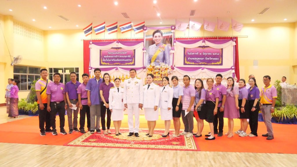 วันอังคาร ที่ ๓ มิถุนายน พ.ศ.๒๕๖๘ เวลา ๐๘.๓๐ น. นางสาวรุ่งฟ้า พามนตรี ผู้อำนวยการกองคลังเทศบาลตำบลชำฆ้อ รักษาการปลัดเทศบาลตำบลชำฆ้อ ปฏิบัติหน้าที่นายกเทศมนตรีเทศบาลตำบลชำฆ้อ มอบหมายให้ เจ้าหน้าที่สำนักปลัดเทศบาลตำบลชำฆ้อ กองการศึกษา และกองยุทธศาสตร์และงบประมาณ เข้าร่วมกิจกรรมเฉลิมพระเกียรติสมเด็จพระนางเจ้าฯ พระบรมราชินี เนื่องในโอกาสวันเฉลิมพระชนมพรรษาสมเด็จพระนางเจ้าสุทิดา พัชรสุธาพิมลลักษณ พระบรมราชินี เพื่อแสดงความจงรักภักดีและสำนึกในพระมหากรุณาธิคุณ ณ หอประชุมที่ว่าการอำเภอเขาซะเมา จังหวัดระยอง