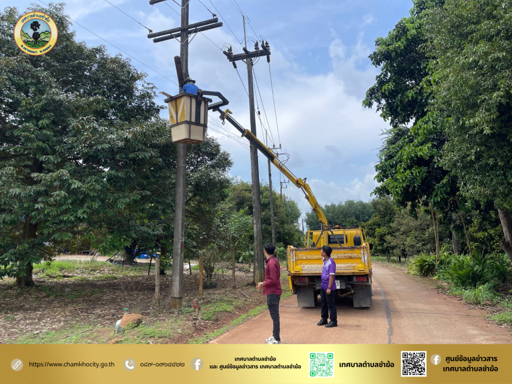 ซ่อมแซมหลอดไฟฟ้าริมถนน พื้นที่หมู่ที่ ๑ ตำบลชำฆ้อ