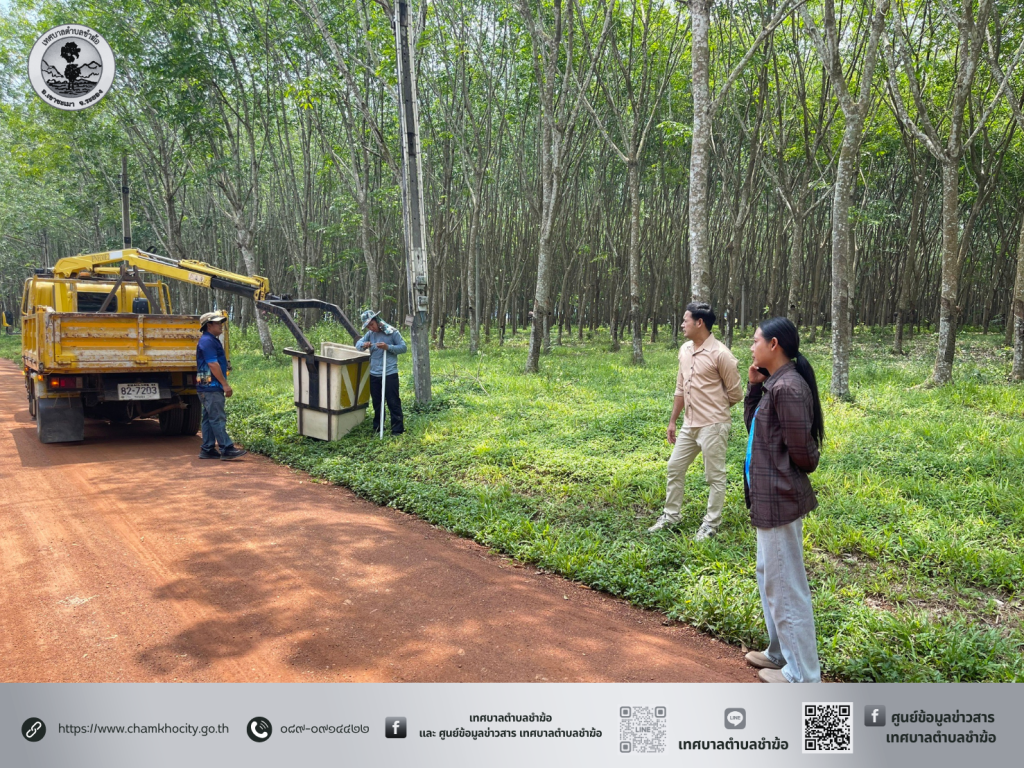 นายเอกพนธ์ ศรีเพ็ชร รองนายกเทศมนตรีตำบลชำฆ้อ พร้อมด้วย นางสาวณัฐวีรกานต์ ยินดี สมาชิกสภาเทศบาลตำบลชำฆ้อ กองช่างเทศบาลตำบลชำฆ้อ ลงพื้นที่หมู่ที่ ๒ ดำเนินซ่อมแซมไฟฟ้าส่องสว่างริมทางจราจร