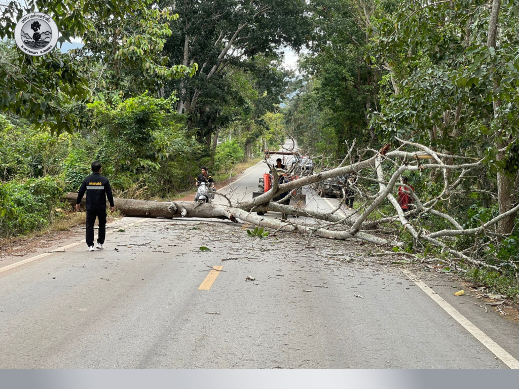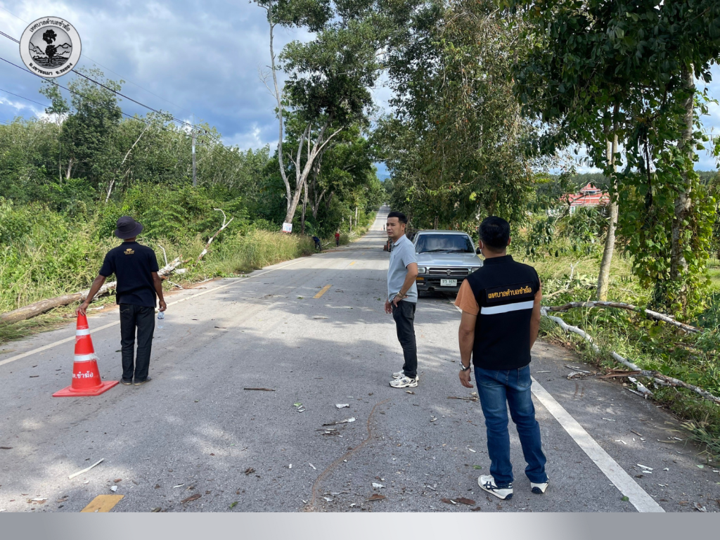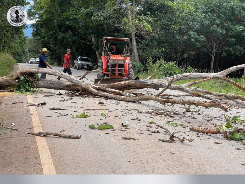 ดำเนินการตัดต้นไม้ยืนต้นตายบริเวณริมทางจราจร ที่เสี่ยงต่อการโค่น พื้นที่ตำบลชำฆ้อ สายบ้านชำฆ้อ – บ้านเขาช่องลม