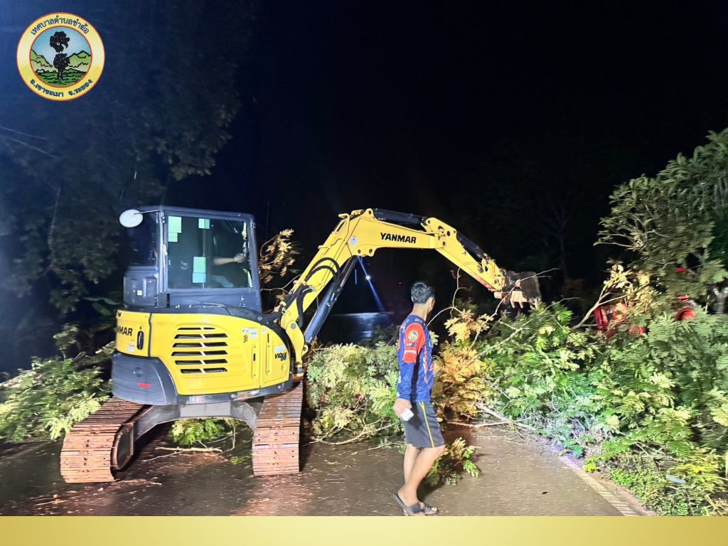 ขอขอบคุณ นายอำนวย รื่นรมย์ ช่วยใช้แม็คโครนำต้นไม้ออกจากทางจราจร